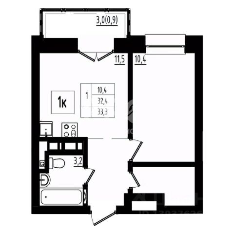 Продам квaртиpу-студию 29м2. с бюджетной отделкой.