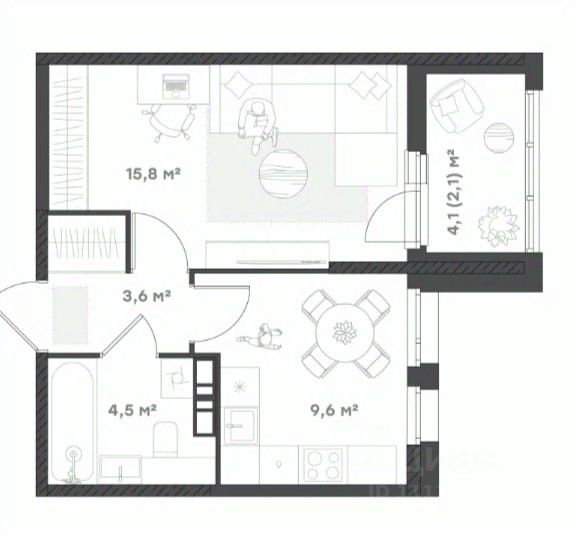 С/у совмещен 4 кв.м;