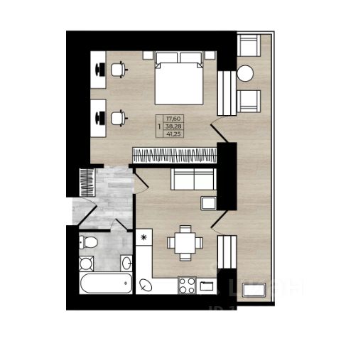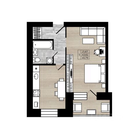 Квартира состоит из 1 комнаты и кухни. Сдается с предчистовой отделкой, высота потолков 2,7 м.
