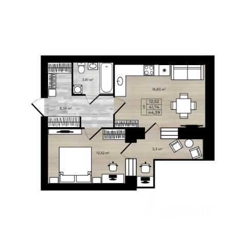 • ✅ Минимальная площадь: 39,5 м²