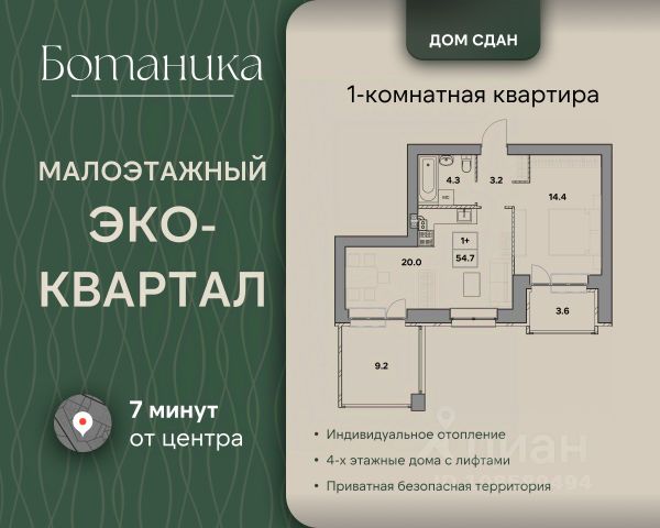 Жилой квартал "Ботаника" —это современный малоэтажный эко-квартал в Ярославле. Жизнь в "Ботанике" — это виды на озеро и пробежки в сосновом бору, всего 7 минут до культурного центра города, современные кирпичные малоэтажные дома, большая приватная территория с детскими площадками и прогулочными зонами, свежий воздух и собственная развивающаяся инфраструктура. Несмотря на малую этажность, наши дома оснащены современными бесшумными лифтами. Входные группы — это просторные светлые пространства с панорамным остеклением и безбарьерной средой. Здесь эстетика гармонично сочетается с заботой о резидентах. Все квартиры создаются с соблюдением принципов эргономики, что позволяет реализовать разные жизненные сценарии. Мы предлагаем широкий выбор планировок: от уютных евро-однушек до двухуровневых лотов с личным выходом на крышу. В каждой квартире предусмотрена система индивидуального отопления. Вы можете приобрести квартиру как с предчистовой или чистовой отделкой, так и с полной меблировкой. Детский сад находится всего в 6 минутах езды от квартала, школа — в 9 минутах. Также проектом предусмотрены собственная школа на 1000 мест и два детских сада, которые будут построены прямо на территории "Ботаники". Квартира 32