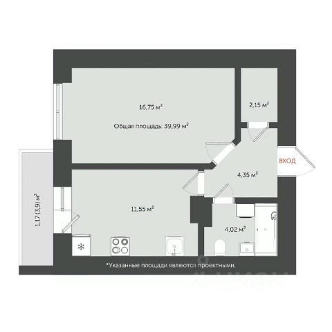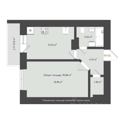 • ✅ Минимальная площадь: 39,1 м²