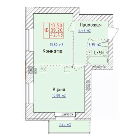 Продаётся 1-комнатная квартира в строящемся доме (Дом 1), срок сдачи: IV-кв. 2027, общей площадью 42.43 кв.м., на 8 этаже. "Триумф Сити" - это жилой комплекс класса комфорт, представляющий из себя девятиэтажный кирпичный жилой дом. На придомовой территории предусмотрены детская и спортивная площадки, обеспечена безбарьерная среда для маломобильных лиц.