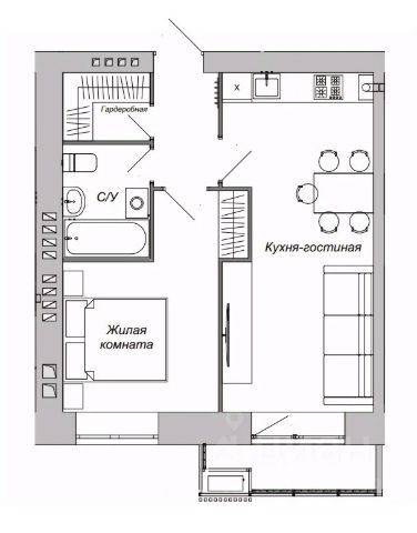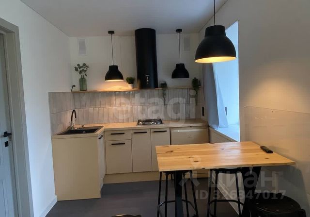 Кухня порадует встроенным гарнитуром: низ выполнен из тёмно-серого матового пластика, верх - из светло-серого матового, профиль "Гола". Установлен трёхступенчатый фильтр питьевой воды, каменная мойка и сантехника. Встроенная бытовая техника включает индукционную варочную панель, духовой шкаф, посудомойку, вытяжку ("Krona", Турция), холодильник, стирально-сушильную машину Indesit, микроволновку и TV LG с классом энергосбережения ААА - всё новое. Материал штор и стульев - велюр. Предусмотрено четыре зоны