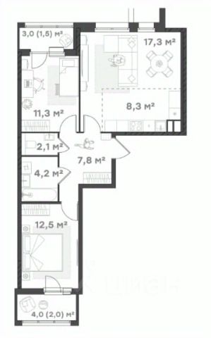 • ✅ Минимальная площадь: 43,7 м²