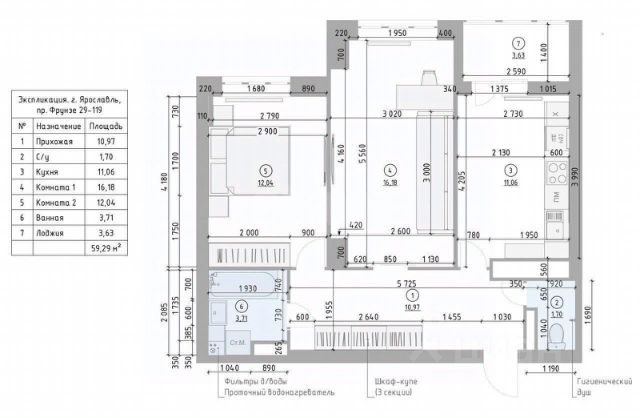 - общая площадь квартиры 55,8 кв.м. (по документам), актуальный обмерочный план прикрепляю (по замерам реальная площадь 59,29 с учетом лоджии 3,63 кв.м).