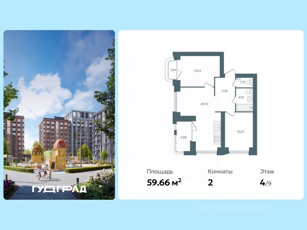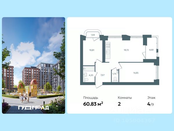 • ✓ В базе Циан 14 2-комнатных квартир на 4 этаже в микрорайоне 9-й в городе Ярославль