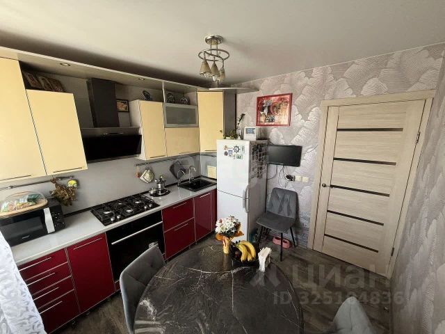 Кухня порадует встроенным гарнитуром: низ выполнен из тёмно-серого матового пластика, верх - из светло-серого матового, профиль "Гола". Установлен трёхступенчатый фильтр питьевой воды, каменная мойка и сантехника. Встроенная бытовая техника включает индукционную варочную панель, духовой шкаф, посудомойку, вытяжку ("Krona", Турция), холодильник, стирально-сушильную машину Indesit, микроволновку и TV LG с классом энергосбережения ААА - всё новое. Материал штор и стульев - велюр. Предусмотрено четыре зоны