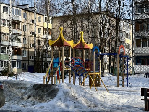 Из окон открывается вид во двор, где расположена детская площадка.