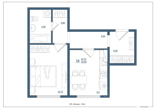 Продаётся 2-комнатная квартира в строящемся доме (Дом 1), срок сдачи: I-кв. 2028, общей площадью 68.65 кв.м., на 4 этаже.