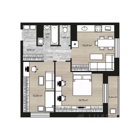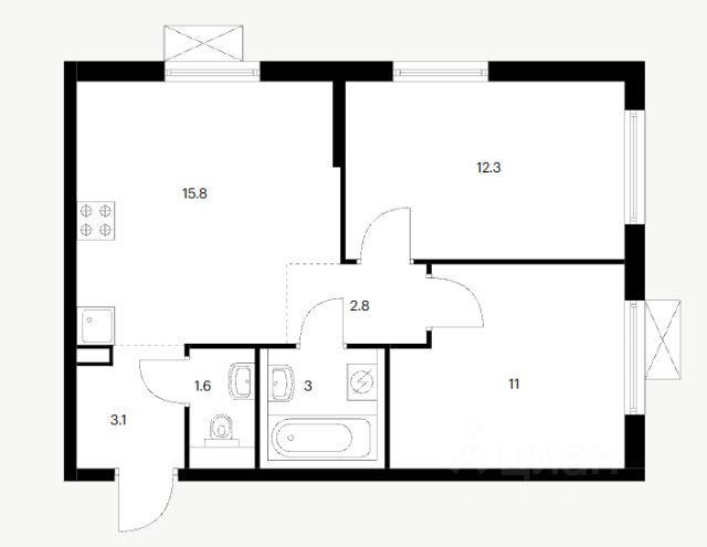 • ✅ Минимальная площадь: 36,8 м²