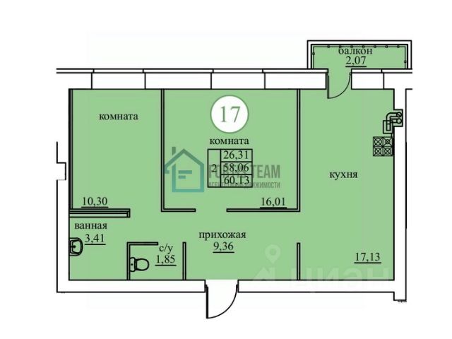- Потолки 2,85 м, большие окна