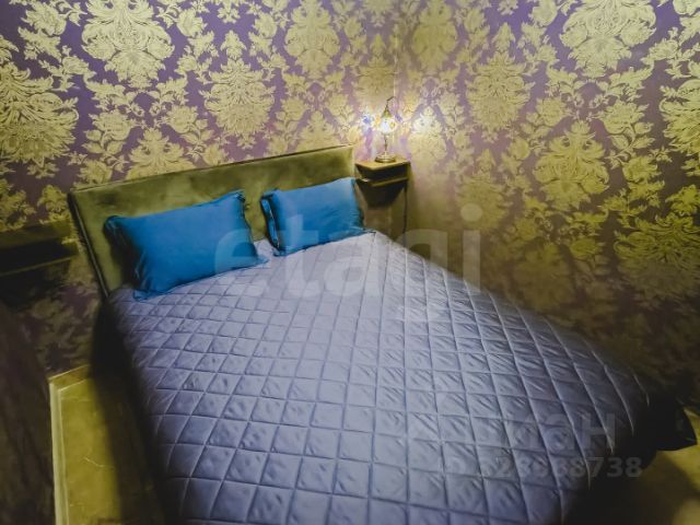В центральной зоне спальни расположена кровать с подъёмным механизмом и местом для хранения размером 160200 см. Высокий матрас средней жёсткости обеспечит комфортный сон. Шторы blackout с RGB-подсветкой и дистанционным управлением создадут уютную атмосферу, а люстра с несколькими режимами работы дополнит картину. Есть выход на открытый балкон, где проведён свет, а пол выложен керамогранитом.