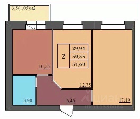 Общая площадь: 55 кв.м.