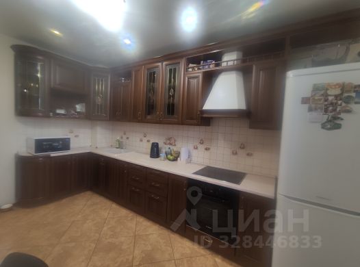 Кухня порадует встроенным гарнитуром: низ выполнен из тёмно-серого матового пластика, верх - из светло-серого матового, профиль "Гола". Установлен трёхступенчатый фильтр питьевой воды, каменная мойка и сантехника. Встроенная бытовая техника включает индукционную варочную панель, духовой шкаф, посудомойку, вытяжку ("Krona", Турция), холодильник, стирально-сушильную машину Indesit, микроволновку и TV LG с классом энергосбережения ААА - всё новое. Материал штор и стульев - велюр. Предусмотрено четыре зоны