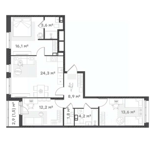 Продаётся 3-комнатная квартира в строящемся доме (Дом 2), срок сдачи: III-кв. 2026, общей площадью 81.52 кв.м., на 6 этаже. При планировании участка применена концепция "двор без машин".Внутренняя часть двора -благоустроенная территория для занятий спортом, отдыха, игр. В каждой секции дома предусмотрены проходные подъезды, через которые жители дома будут попадать и на дворовую территорию и к дорогам и парковкам, расположенным с внешней стороны. Вход в подъезды с уровня земли. Каждый подъезд дома имеет лифт грузоподъемностью 630 кг. При разработке планировок квартир применяется зарекомендовавшая себя на практике концепция квартиры с большой комнатой, включающей в себя зоны гостиной, кухни и столовой. Эта комната является своеобразным аналогом общественного пространства для членов семьи. Спальни и детские комнаты запроектированы меньшего размера, но с полным учетом всех необходимых функциональных зон и сценариев. Таким образом в каждой, даже однокомнатной квартире есть обособленные дневное общественное и ночное приватное пространства. В цокольном этаже дома будут устроены кладовые помещения для хранения площадью от 5 до 15 кв.м. Попасть в кладовую можно из подъезда. Кладовые предназначены для хранения крупногабаритных вещей: автомобильных покрышек, лыж, санок, велосипедов, детских колясок. Собственная кладовая поможет вам разгрузить вашу квартиру от сезонных вещей, и использовать лоджию и свободное пространство квартиры для уютного отдыха , а не для хранения крупногабаритных вещей. На фасадах домов будут смонтированы короба для установки наружных блоков кондиционеров.