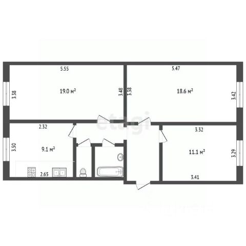 Объект расположен на 1 этаже 3-этажного кирпичного дома.