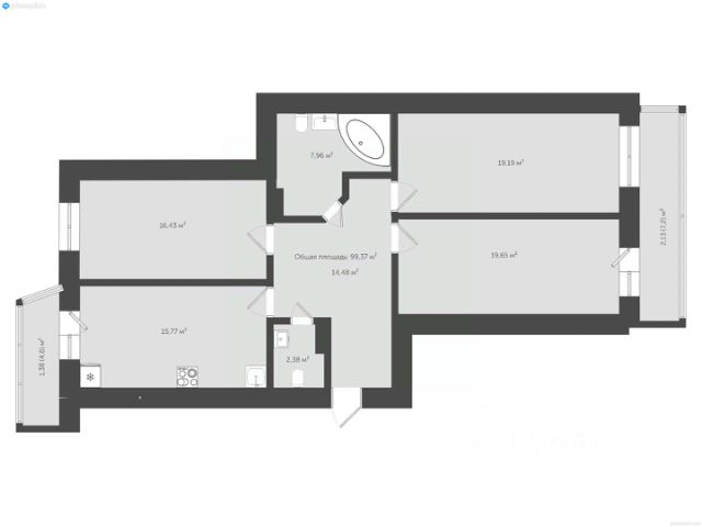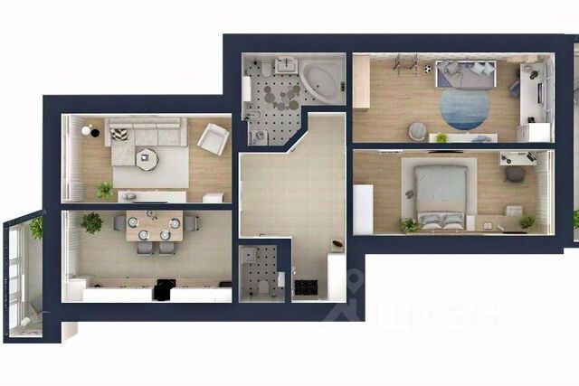 В квартире прекрасная планировка распашонкой: все комнаты изолированные, кухня 12 кв.м., санузел раздельный, вместительная гардеробная система в коридоре - идеальное решение для большой и дружной семьи!