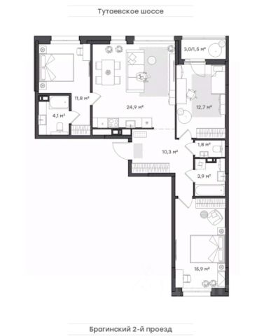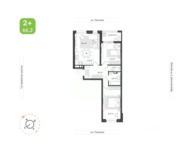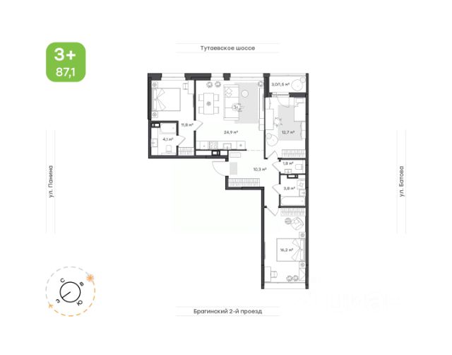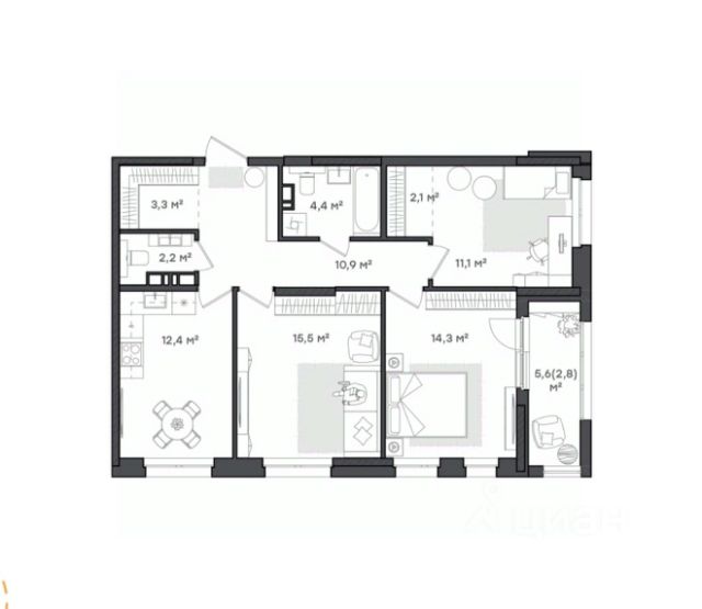 Квартира для большой семьи Прихожая с местом под шкаф-купе и отдельной постирочной. Большая, функциональная кухня-гостиная, с выходом на лоджию, где можно обустроить дополнительную зону отдыха. Просторная мастер-спальня с собственным санузлом и две уютных комнаты, одна из которых с гардеробной. Второй санузел сомещенный.