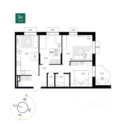 97 097 ₽/м²
