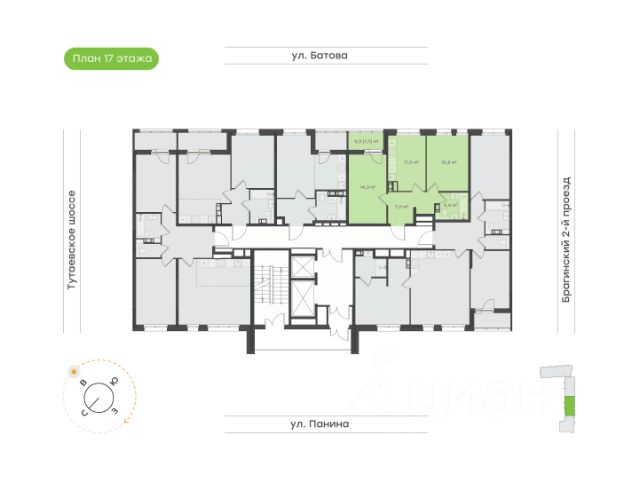Продаётся 2-комнатная квартира в строящемся доме (Дом 2), срок сдачи: III-кв. 2026, общей площадью 71.48 кв.м., на 14 этаже. 8-и этажный жилой дом располагается по адресу : г. Ярославль, Тутаевское шоссе, д.60, параллельно Тутаевскому шоссе.