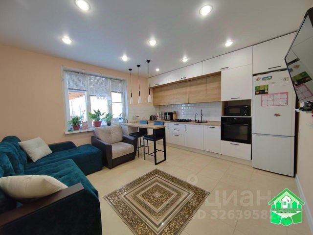 На первом этаже большая кухня-гостиная , теплые полы (плитка)