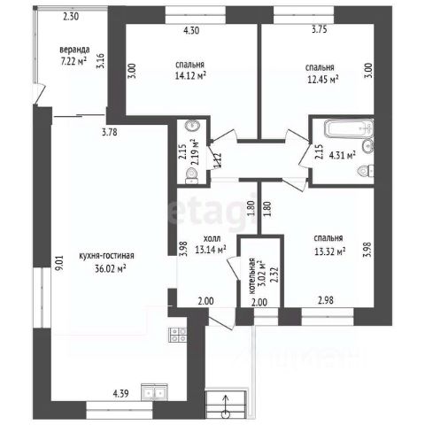 • ✅ Минимальная площадь: 14,4 м²