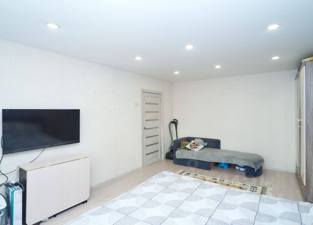 гостиная-кухня , с продуманной эргономикой, удобным диваном. Стол, стулья, дизайнерская тумба, телевизор;