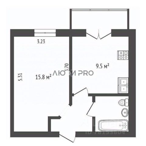 - площадь кухни 14,4м2, комната - 11,9 м2;