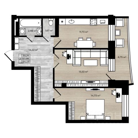 Продаётся 2-комнатная квартира в строящемся доме (1 этап), срок сдачи: IV-кв. 2026, общей площадью 58.7 кв.м., на 11 этаже. Проектируемое здание размещается на земельном участке, расположенном в Заволжском районе Ярославля на пересечении важных городских магистралей - пр. Машиностроителей и ул. Серго-Орджоникидзе на месте сносимого здания заволжского рынка. Его объем состоит из двух 18-этажных башен, объединенных одноэтажным стилобатом. Первый этаж занимают помещения социальной коммерческой инфраструктуры , которые организуют общественное пространство с трех сторон проектируемого здания. Фасады первого этажа, выходящие на улицу имеют витринное остекление что усиливает связь между зданием и пешеходным пространством. Жилые башни визуально закрепляют важный градостроительный узел, формируя запоминающийся образ в месте пересечения городских магистралей. С этой целью здание решено в одном материале терракотового цвета, который объединяет обе башни и стилобат в единую композицию. Кровля стилобата становится продолжением пространства двора, на ней размещается физкультурная площадка и площадки отдыха. Кровли жилых башен тоже эксплуатируемые, на них размещены площадки для занятия физкультурой, площадки для отдыха и хозяйственные площадки. Входные группы жилых башен имеют колясочные. В них находятся по 3 лифта, 1 грузопассажирский и 2 пассажирских. Вход в здание организован с отметки тротуара без необходимости устройства пандусов и лестниц. Все квартиры имеют аварийные выходы в соответствии с противопожарными нормами. Несущие конструкции и перекрытия - монолитный железобетон. Наружные стены - несущие из газосиликатного блока с эффективным наружным утеплением. Облицовка фасадов выполняется по технологии НВФ с применением фиброцементных панелей. Витражи первого этажа - алюминиевые с заполнением прозрачным стеклом. Окна и лоджии квартир - пластиковый переплет с заполнением прозрачным стеклом.