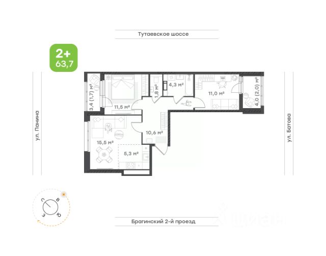 Школы: 89 - 3 мин., 206 м, 23 - 6 мин., 471 м, детская школа искусств - 10 мин., 731 м, интернат ФК "Шинник" - 10 мин., 750 м.