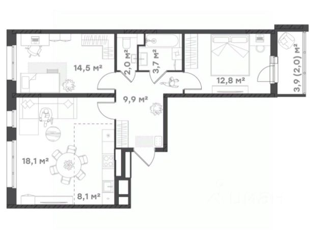 Продается 2-комнатная квартира 55,54 м в НОВОМ жилом комплексе в Дзержинском районе! Квартира расположена на 18-ом этаже монолитно-кирпичного дома.