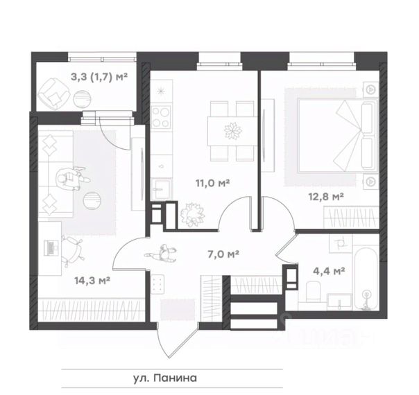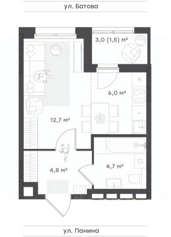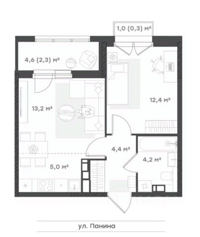 Функциональность и комфорт Оптимальная планировка 1+ для молодой семьи, холостяка или семьи, в которой дети выросли и живут отдельно. Просторная кухня-гостиная с выделенной зоной для отдыхаи выходом на лоджию. Светлая спальня с местом под шкаф. Прихожая с нишей под шкаф-купе. Совмещенный санузел.