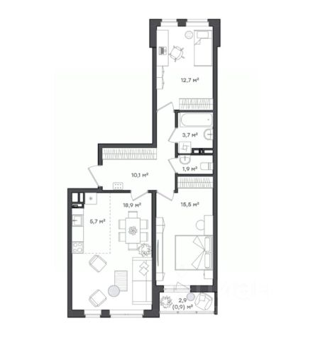 Семейная квартира Просторная кухня гостина 24,6 кв.м станет местом притяжения для всех членов семьи. Здесь вы сможете развивать свои кулинарные навыки и принимать гостей. Или собираться всей семьёй, чтобы посмотреть фильм или обсудить какие-то новости Родительская спальня 15,5 кв.м с собственным балконом 2,9 кв.м - станет местом в котором можно отдохнуть и расслабиться после сложного дня Детскую комнату мы расположили в противоположной стороне от родительской спальни, чтобы никто не мешал друг другу. Площадь комнаты 12,7 кв.м позволяет обустроить пространства для двух детей, разделив его на рабочую и зону отдыха Коридор 10,1 кв.м достаточно просторный для комфортного расположения гостей Ванная комната совмещенная с туалетной комнатой и отдельная уборная- особенно удобно для каждого члена семьи.