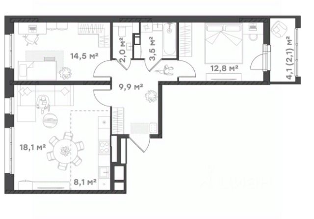 Классическая однокомнатная Просторная кухня 12, 5 кв.м придется по душе любителям классических планировок Огромная спальня 18, 9 кв. м отлично сомещает в себе зоны работы и отдыха. Выход на балкон 4,7 кв.м - отдельный бонус для тех, кто хочет обустроить для себя еще одну зону релакса- читайте книгу, смотрите фильм и любуйтесь видом Просторный коридор 4,8 кв. м с нишей под шкаф-купе для ваших многочисленных вещей В ванной комнате уже предусмотрено место под вашу стиральную машину