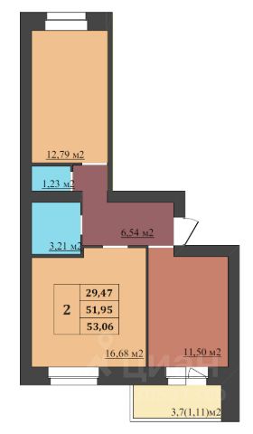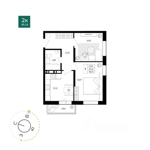 Квартира расположена на втором этаже. Жилая площадь составляет 17,8 квадратных метров, площадь кухни 10 квадратных метров, что предоставляет достаточно места как для приготовления пищи, так и для семейных обедов.