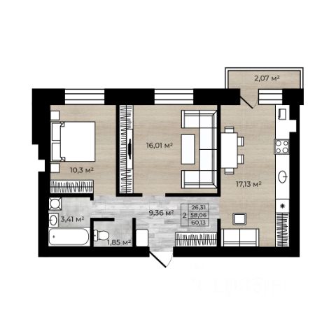 2-комнатная квартира с кухней-гостиной в кирпичном доме с индивидуальным отоплением Срок сдачи 3-го дома IV квартал 2026 года. Жилой квартал "Миниполис это то современный малоэтажный комплекс в гармонии с природой, сочетающий загородный уют с городскими удобствами. В 32 малоэтажных дома в живописной локации у озера. Преимущества комплекса: - Индивидуальное газовое отопление (низкие коммунальные платежи). - Качественные материалы: стены из керамического кирпича. - Предчистовая отделка (стены оштукатурены, стяжка пола, установлены окна, радиаторы, входная дверь, остеклены балконы). - Панорамное остекление балконов, французские балконы. - Благоустроенные дворы, большая парковка. - Безбарьерная среда. Инфраструктура и транспортная доступность: *5 минут пешком до остановки *7-10 минут на транспорте до школ и детских садов. *"Магнит" в шаговой доступности. * "Глобус" и "Леруа Мерлен" 5 минут на машине. Идеальный вариант для тех, кто ценит комфорт, природу и современные технологии! Подходит под семейную ипотеку и ИТ-ипотеку