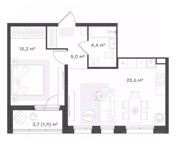 Идеально для небольшой семьи. Оптимальная планировка 1+ для молодой семьи, холостяка или семьи, у которой дети выросли и живут отдельно. Квартира с отделкой "белые стены". Все черновые работы уже выполнены, и квартира готова к тому, чтобы вы создали в ней собственный стиль. Это ваш чистый холст, просто добавьте цвет, текстуру и детали, которые нравятся именно вам! Просторная кухня-гостиная с удачным зонированием и выходом на лоджию, где можно обустроить дополнительную зону отдыха. Спальня с местом под гардероб. Прихожая с нишей под шкаф-купе. Совмещенный санузел.