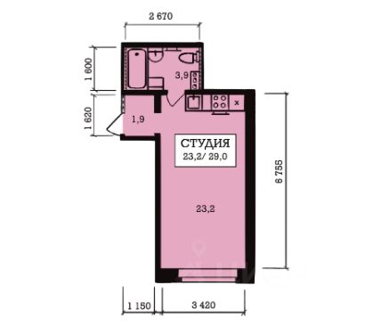 Продам квaртиpу-студию 29м2. с бюджетной отделкой.