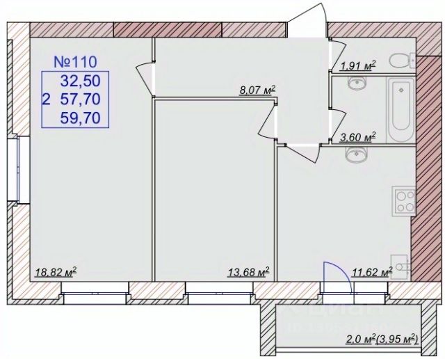 Стоимость квартиры включает в себя предчистовую отделку.