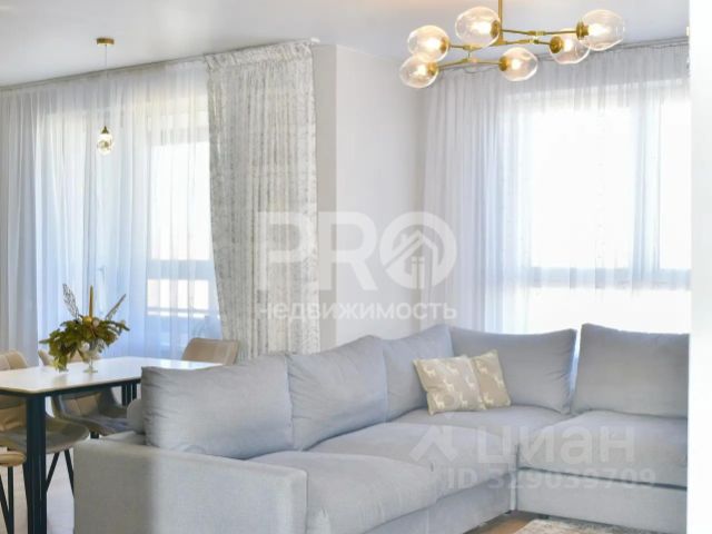 По всей квартире установлены натяжные потолки ( в гардеробной, на балконе тоже), установлены карнизы со скрытым креплением ( на балконе предусмотрено место для установки карниза), в комнате установлена стильная подсветка карниза. Лампа на пульте управления.