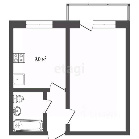 Общая площадь- 38,8 кв.м.