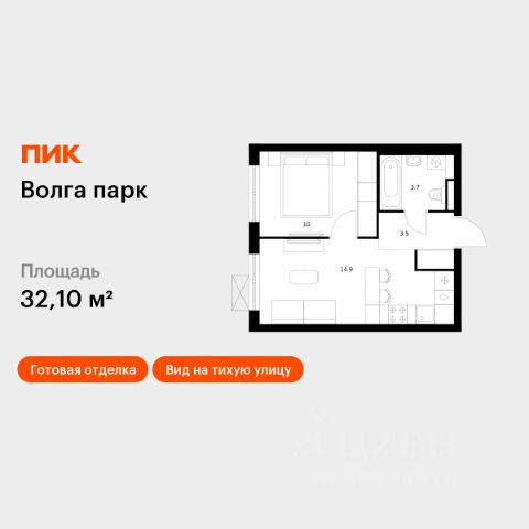 Продаётся 1-комн. квартира площадью 32,1 кв.м на 17 этаже 17 этажного дома (Корпус 1В, Секция 2) проекта ПИК Волга парк. Светлый просторный подъезд на уровне земли, функциональная планировка, большие окна, c отделкой. Жилой комплекс "Волга парк" расположен в 15 мин. езды от центра Ярославля во Фрунзенском р-не на правом берегу Волги. В проекте предусмотрено 18 жилых корпусов, две школы и 3 детских сада. Квартиры с нейтральной отделкой; подъезды с высокими потолками, панорамными окнами и двумя входами на уровне земли без ступеней и пандусов. В каждом дворе будет зелень, места для отдыха, детские и спортивные площадки. На первых этажах готовых домов открыта автошкола, мебельный и цветочный магазины, студия красоты, паб; по мере сдачи корпусов появится больше товаров и услуг. В непосредственной близости находится 4 детских сада, школа, поликлиники, торговый центр "Фреш" , фитнес-клубы. В 15 минутах ходьбы расположены крупные гипермаркеты, а также благоустроенный парк Судостроителей. Артикул 975983 (Застройщик ООО "РУСБИЗНЕСИНВЕСТ")