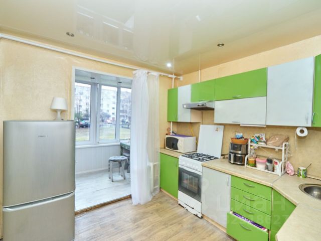 Кухня порадует встроенным гарнитуром: низ выполнен из тёмно-серого матового пластика, верх - из светло-серого матового, профиль "Гола". Установлен трёхступенчатый фильтр питьевой воды, каменная мойка и сантехника. Встроенная бытовая техника включает индукционную варочную панель, духовой шкаф, посудомойку, вытяжку ("Krona", Турция), холодильник, стирально-сушильную машину Indesit, микроволновку и TV LG с классом энергосбережения ААА - всё новое. Материал штор и стульев - велюр. Предусмотрено четыре зоны