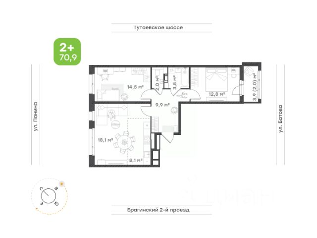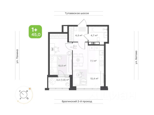 ровный пол готовый к укладке ламината или другого напольного покрытиястены оштукатурены и готовы к поклейке обоеввыводы под розетки и выключателикачественная входная дверь, стеклопакеты и фурнитурапрекрасная шумоизоляция
