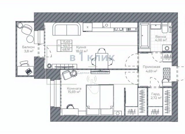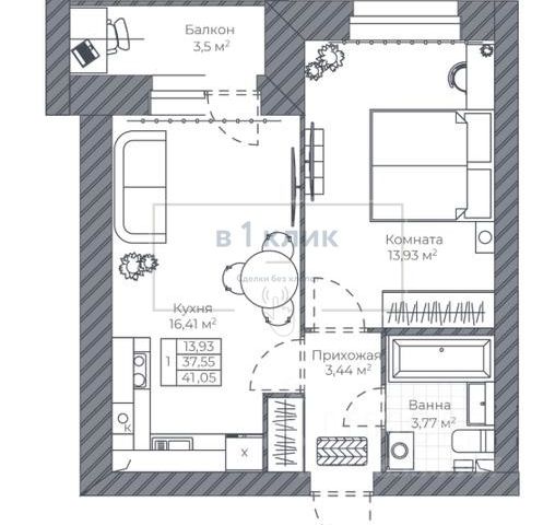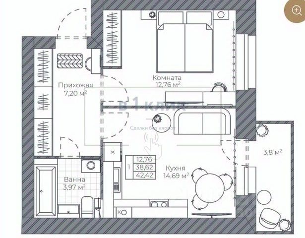 Продам квaртиpу-студию 29м2. с бюджетной отделкой.