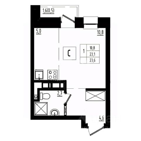 Продам квaртиpу-студию 29м2. с бюджетной отделкой.
