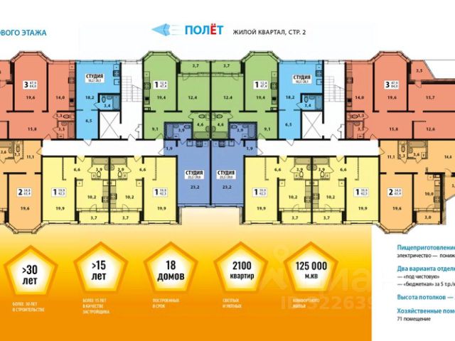 Просторная, светлая 1-комнатная квартира: коридор 6,6 м2 с выделенной гардеробной зоной, совмещенный санузел 3,9 м2, комната 19,9 м2 с выделенной спальной зоной, лоджия 3,7 м2 из кухни. Практически квадратная кухня 10,2 м2. Строение 2 на ул. Дядьковская ЖК "Полёт" это 10-этажный 2-х подъездный 138-ми квартирный дом, расположенный по ул. Дядьковская, напротив д.3, в пяти минутах ходьбы от проспекта Фрунзе. Начало строительства: 3 квартал 2024 года Планируемый срок ввода в эксплуатацию: 4 квартал 2025 года Квартиры сдаются под чистовую отделку, с сантехникой, счетчиками, Интернетом. Окна пластиковые с двухкамерными стеклопакетами. Отопление и горячая вода производятся по средствам собственной газовой котельной дома, расположенной на крыше здания над лифтовой шахтой первого подъезда. Пищеприготовление электроплиты. По желанию покупателя компания-застройщик выполнит в квартире бюджетную отделку по невысокой стоимости. Рядом с ЖК "Полёт" находятся: 4 детских сада, 1 школа, супермаркеты "Адмирал" и "Пятерочка", ТЦ "Фреш", гипермаркет "Metro Cash and Carry", ТД "Аксон", ресторан быстрого питания "Вкусно и точка", многофункциональный спортивный комплекс "Локомотив" со стадионом, Храм Благоверного Великого князя Ярослава Мудрого.Кроме этого, в 5-минутной транспортной доступности: 1 школа, 2 детских сада, детская поликлиника, гипермаркет "Лента", отделение "Сбера", отделение "Почта России", аквапарк "Тропический остров", парк "Судостроителей" и прочее. ЖК "Полёт" расположен между двумя остановками общественного транспорта на проспекте Фрунзе: "Поселок Сокол" (около 400 м от ЖК) и "Чернопрудая" (около 700 м от ЖК). По проспекту Фрунзе ходят автобусы: 41 - от поселка "Прибрежный" до Ярославля-Главного (минуя Центр); 41а от поселка Куйбышева до ТРК "Ярославский Вернисаж"; 41б - от поселка Куйбышева до "Богоявленской" площади в Центре; 42 от поселка Куйбышева до 15 мкрн в Брагино; 49 от ул. Ярославская до 15 мкрн в Брагино; 56 от поселка Прибрежный до Машприбора в Заволжском районе и маршрутные такси: 46 от больницы 2 до 15 мкрн в Брагино; 82 от ул. Светлая д 15 мкрн. В Брагино. Реализация квартир ведется по договорам долевого участия с использованием "эскроу-счетов". Это предполагает размещение средств дольщиков на их собственных счетах в банке до ввода дома в эксплуатацию. Продам квартиру первичка в районе Фрунзенский в городе Ярославль.