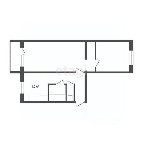 Евродвушка ,гостинная совмещена с кухней ,S -36,8
