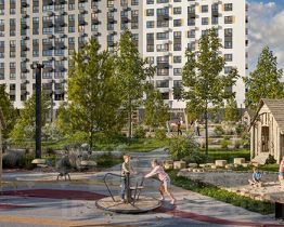 Открытая парковка + спортивная площадка.